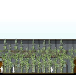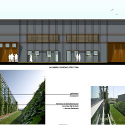 L’intervento mira alla riconversione architettonica di un tipico volume industriale attraverso l’implementazione di una pelle tecnologica vegetale. L’obiettivo è duplice: mitigare l’impatto visivo dell’edificio nel paesaggio e trasformare l’involucro in un sistema attivo per il miglioramento del microclima interno e del benessere del capitale umano. La soluzione tecnica prevede l’installazione di un sistema a schermatura avanzata composto da una maglia di tiranti verticali e funi in acciaio inossidabile, caratterizzati da un’alta resistenza alla corrosione e ai carichi dinamici (vento e peso della biomassa).
